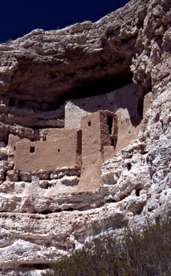 И напоследок мы заехали в долину Верде (Verde Valley), где в отвесной скале притаился Замок Монтесумы (Montezuma Castle) – удивительное пятиэтажное строение, которое в общем-то и не замок, и Монтесума в нем никогда не был. Просто первые испанские поселенцы предположили, что такое величественное сооружение мог построить только император ацтеков. А на самом деле этот врезанный в скалу архитектурный шедевр с 20 комнатами соорудили около 600 лет назад индейцы, о которых известно только то, что называли их Хохокам (Hohokam) – “те, кто исчезли”. Сейчас мы можем только смотреть на замок с подножья скалы и гадать о том, какой же была жизнь в те времена. Никто не знает, когда замок покинули “те, кто исчезли”, но мне кажется, что они все еще где-то там, бродят вокруг своего обиталища…